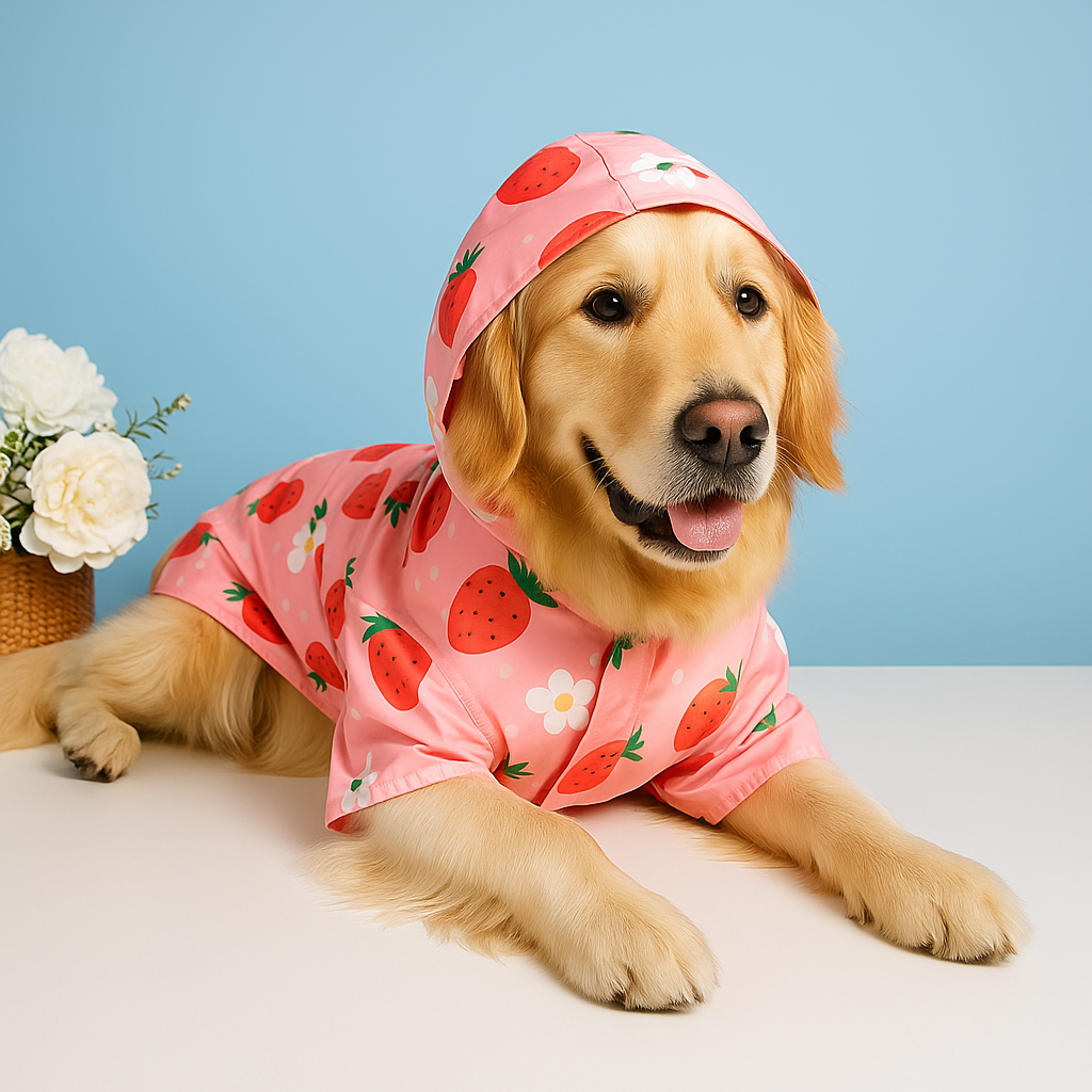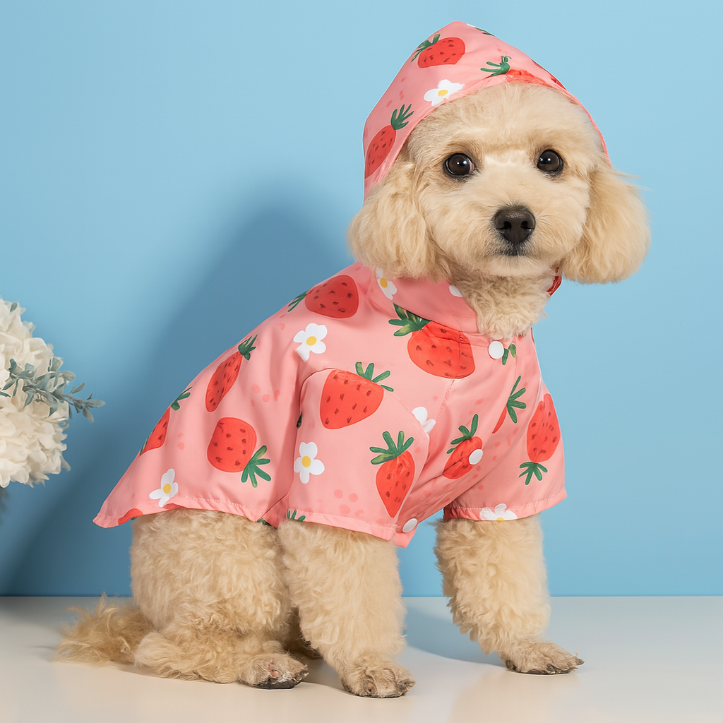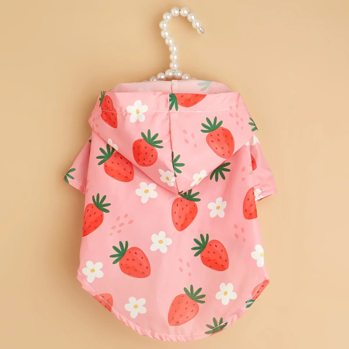 Unser Erdbeer-Regenmantel vereint Niedlichkeit und Funktionalität, um Ihren Hund trocken und stilvoll zu halten.