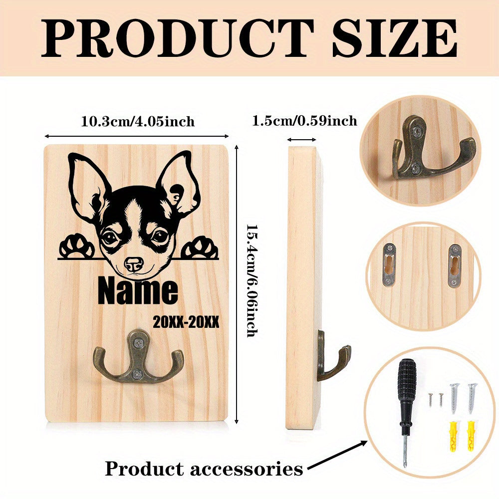 Met deze houten hondenriemhouder geef je de spullen van je hond een vaste én betekenisvolle plek. De houder wordt gepersonaliseerd met de naam en geboortedatum van je hond, waardoor het niet alleen praktisch is, maar ook een mooie herinnering aan jouw trouwe viervoeter. Perfect voor in de hal, bij de deur of in de hondenhoek.