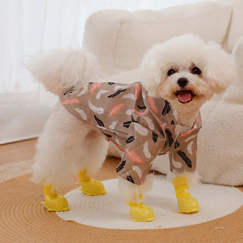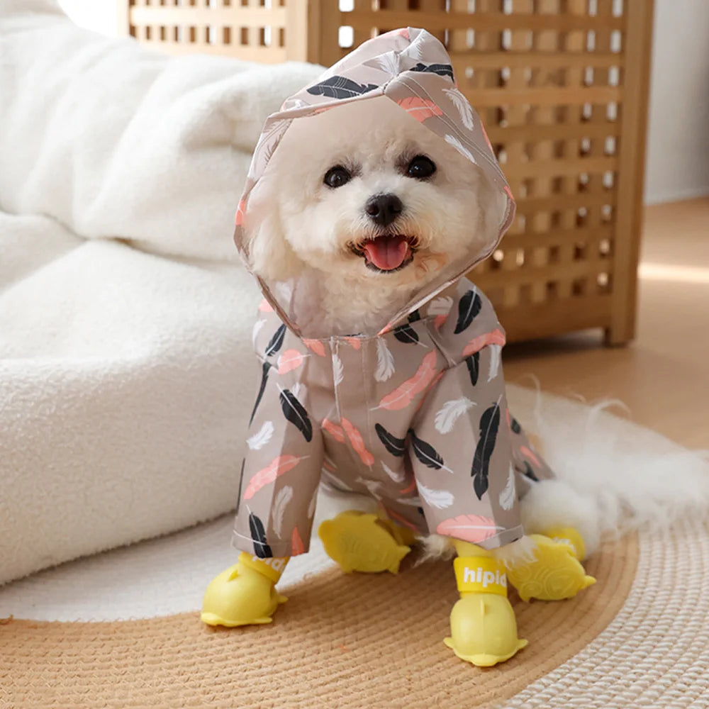 Lassen Sie Ihren Hund mit dem bedruckten Regenmantel auch an regnerischen Tagen strahlen.