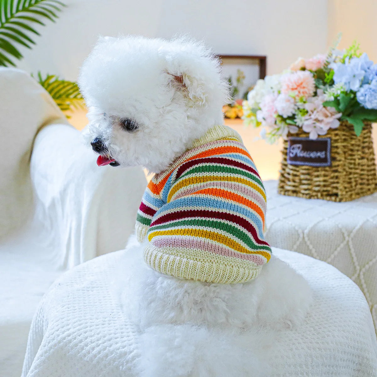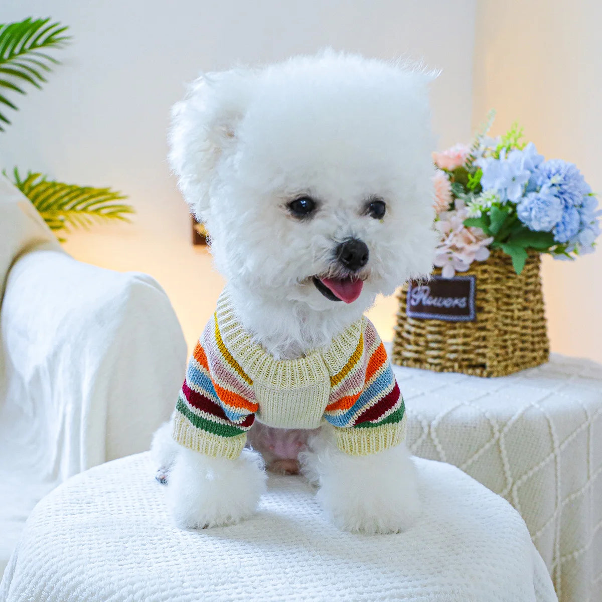 Machen Sie den Tag Ihres Hundes mit dem Regenbogenpullover noch sonniger, perfekt für einen farbenfrohen Look und ultimativen Komfort.
