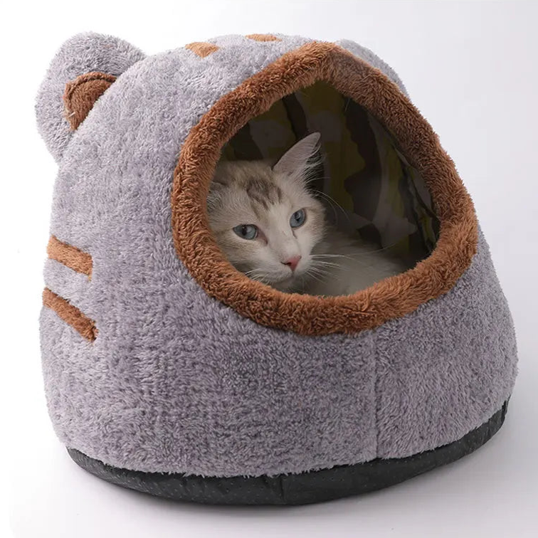 Niedliches Katzenbett mit Bärenkopf – warme, gemütliche Höhle für ultimativen Komfort