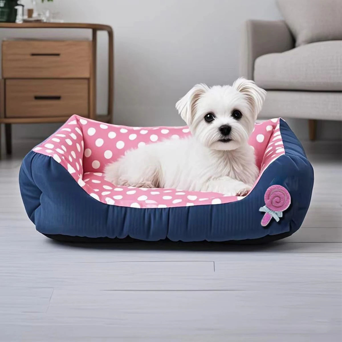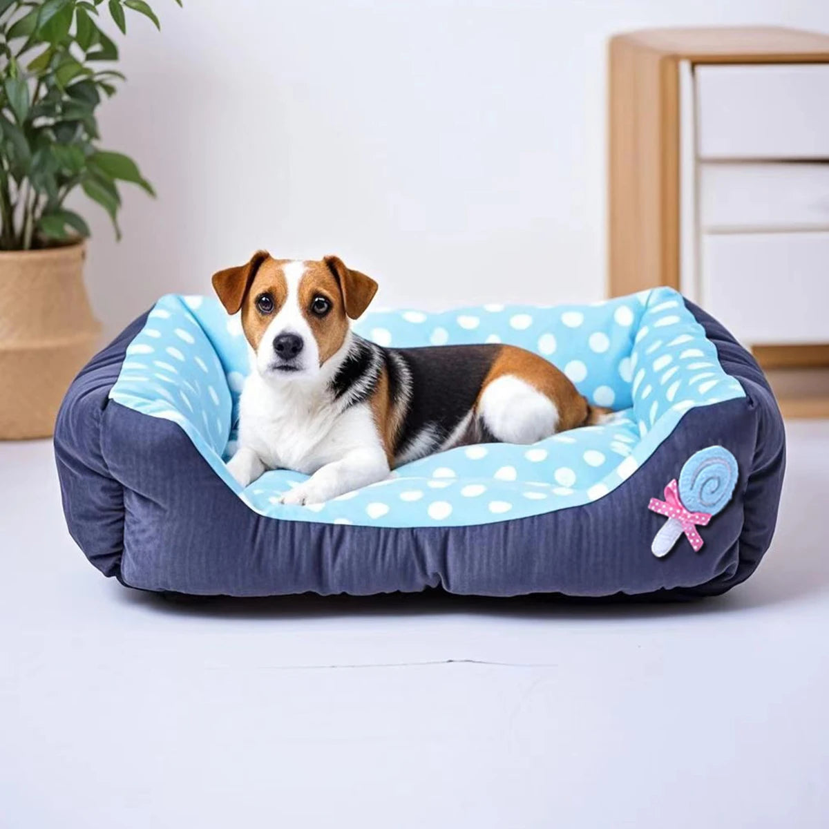 Een vrolijke, knusse rustplek voor jouw hond! Dit snoepkleurige hondenbed combineert heerlijk ligcomfort met een speels design dat je huis opvrolijkt. Perfect voor honden die graag warm en zacht liggen.