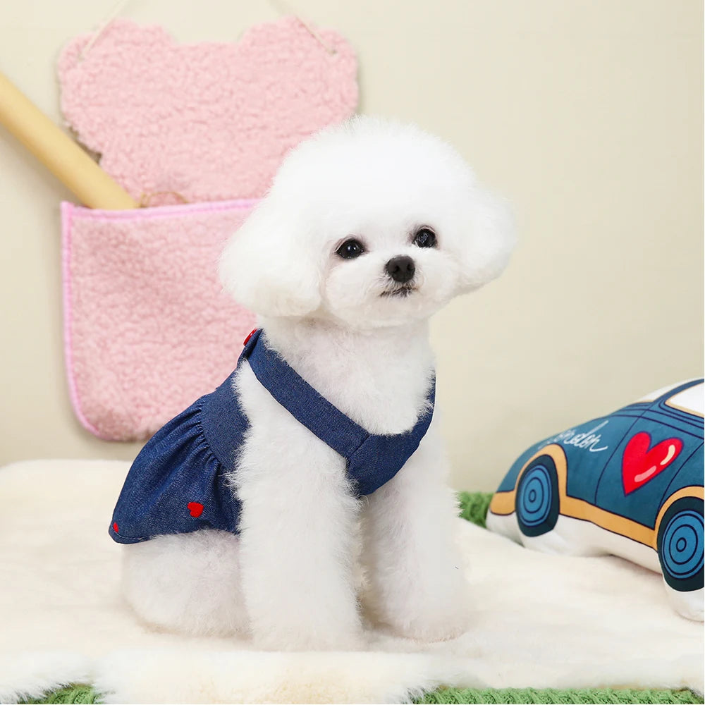 Verleihen Sie Ihrem Hund in diesem süßen Jeanskleid einen coolen und stylischen Look.