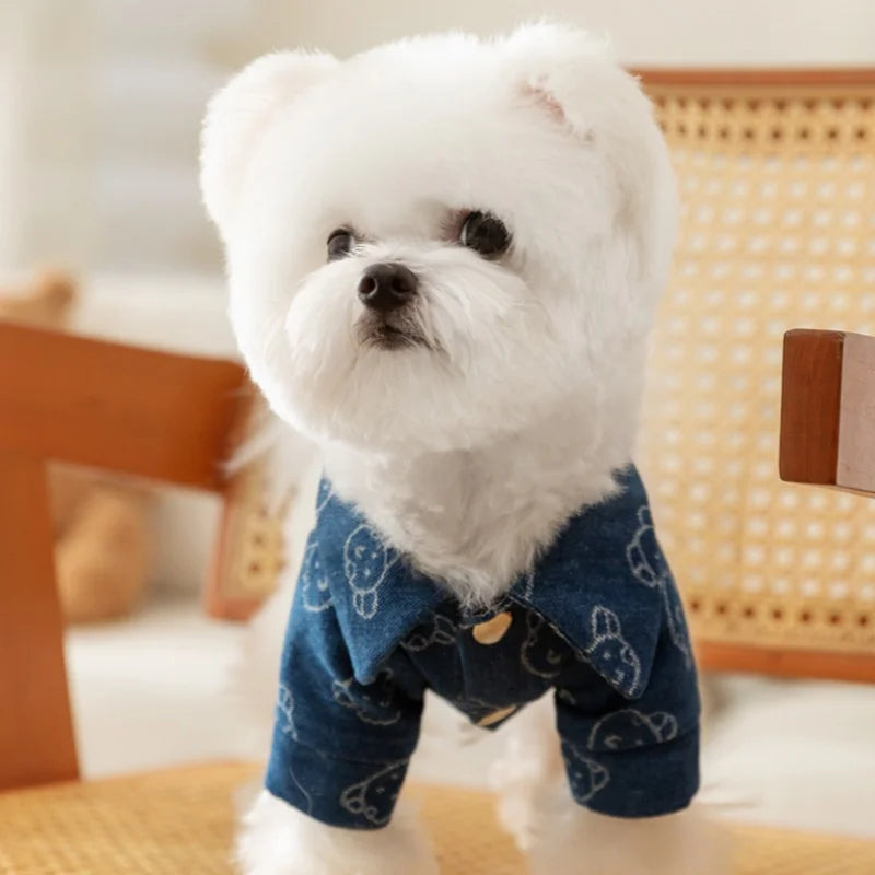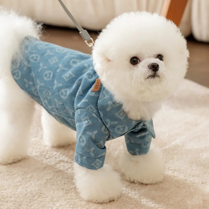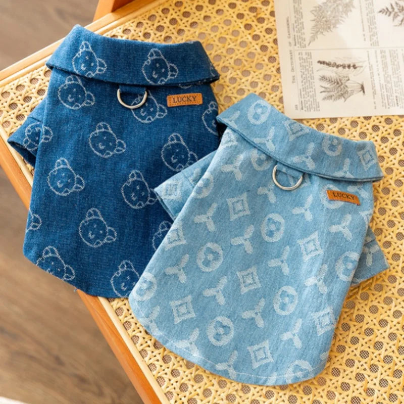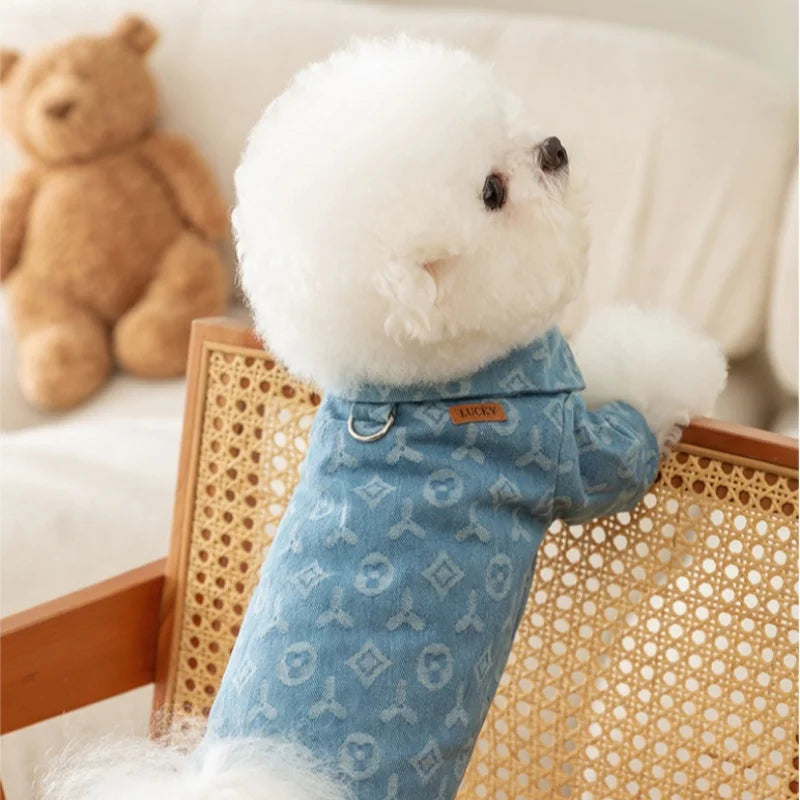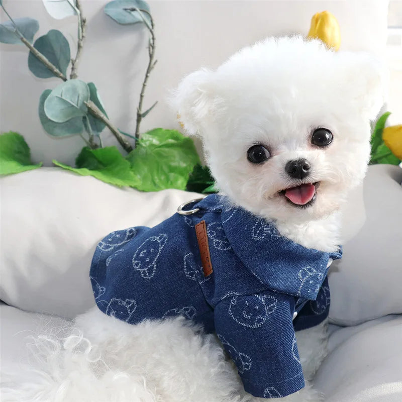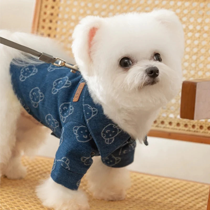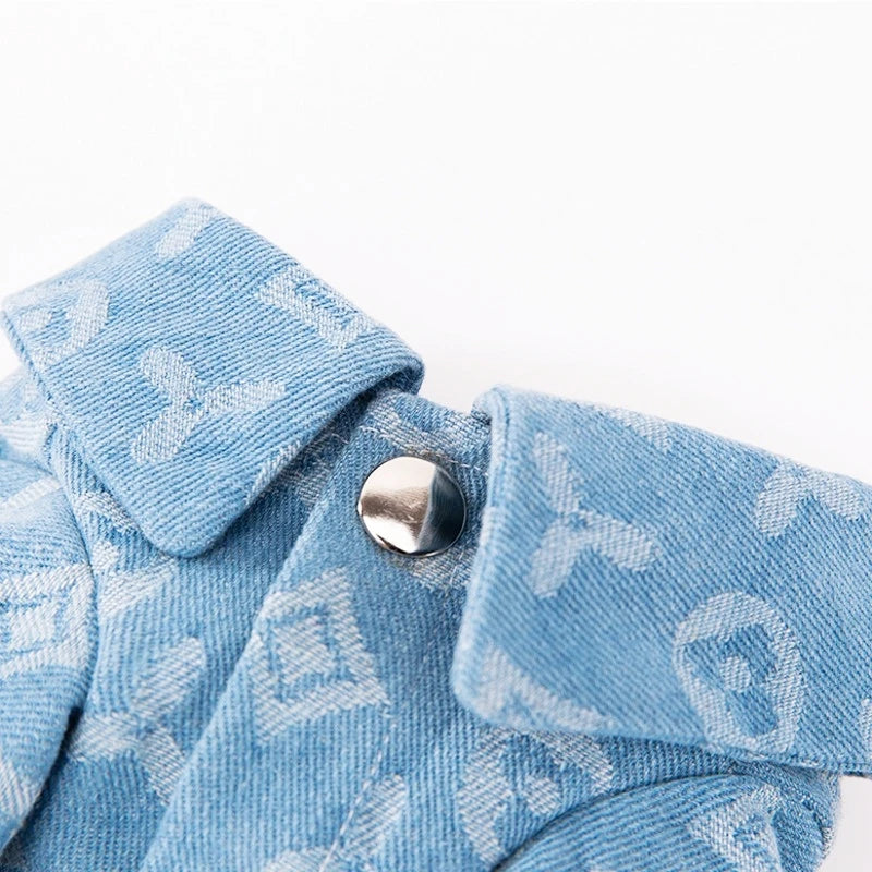 Verleihen Sie Ihrem Hund mit der bequemen und strapazierfähigen Jeansweste einen trendigen Look.