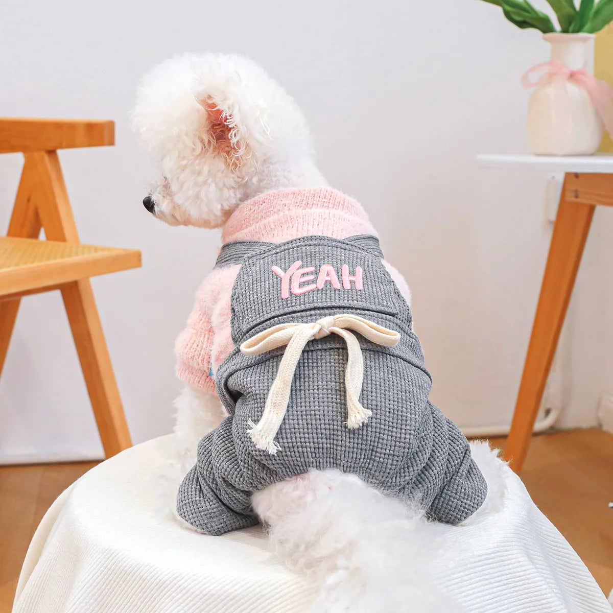 Lassen Sie Ihren Hund im fröhlichen und bequemen Yeah-Jumpsuit strahlen.