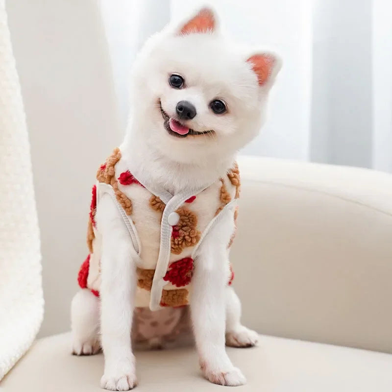Ons Bloemetjes Vest combineert stijl en comfort, perfect om je viervoeter warm en modieus te houden.