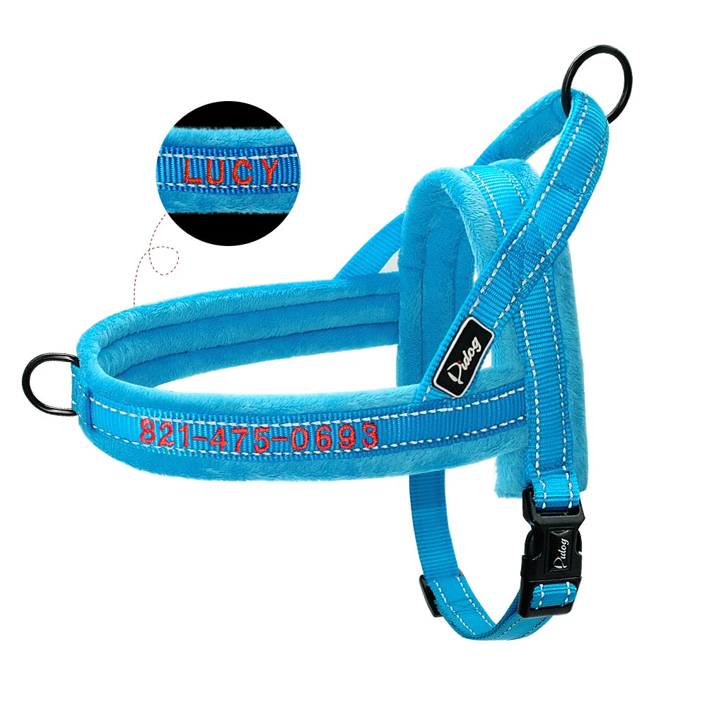 Verwen je hond met een comfortabel en veilig harnas, voorzien van zachte voering, reflecterende details en een persoonlijke borduring. Biedt optimale zichtbaarheid, comfort en gemoedsrust, zodat jij en je hond zorgeloos kunnen genieten van elke wandeling.