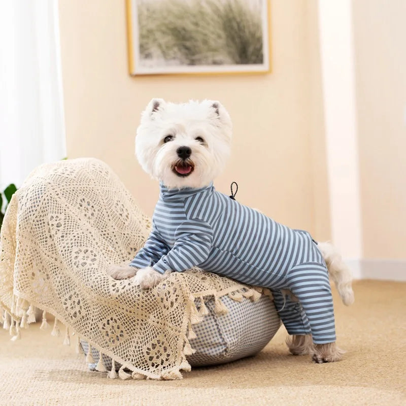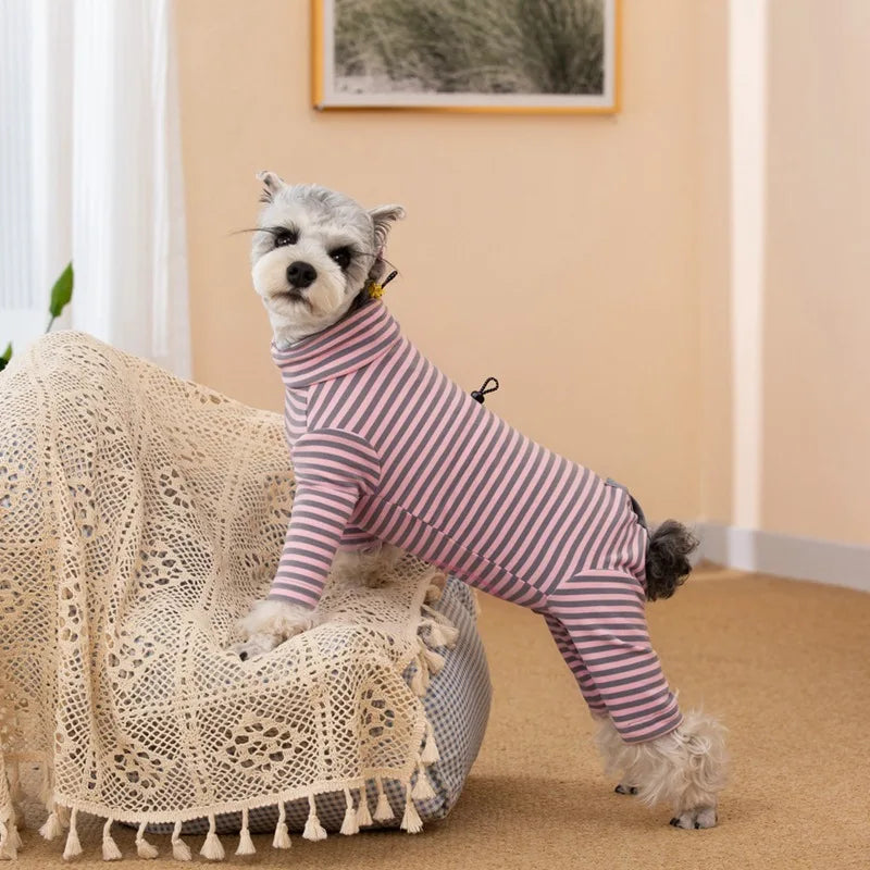 Houd je hond knus en stijlvol met de Streepjes Pyjama Jumpsuit!