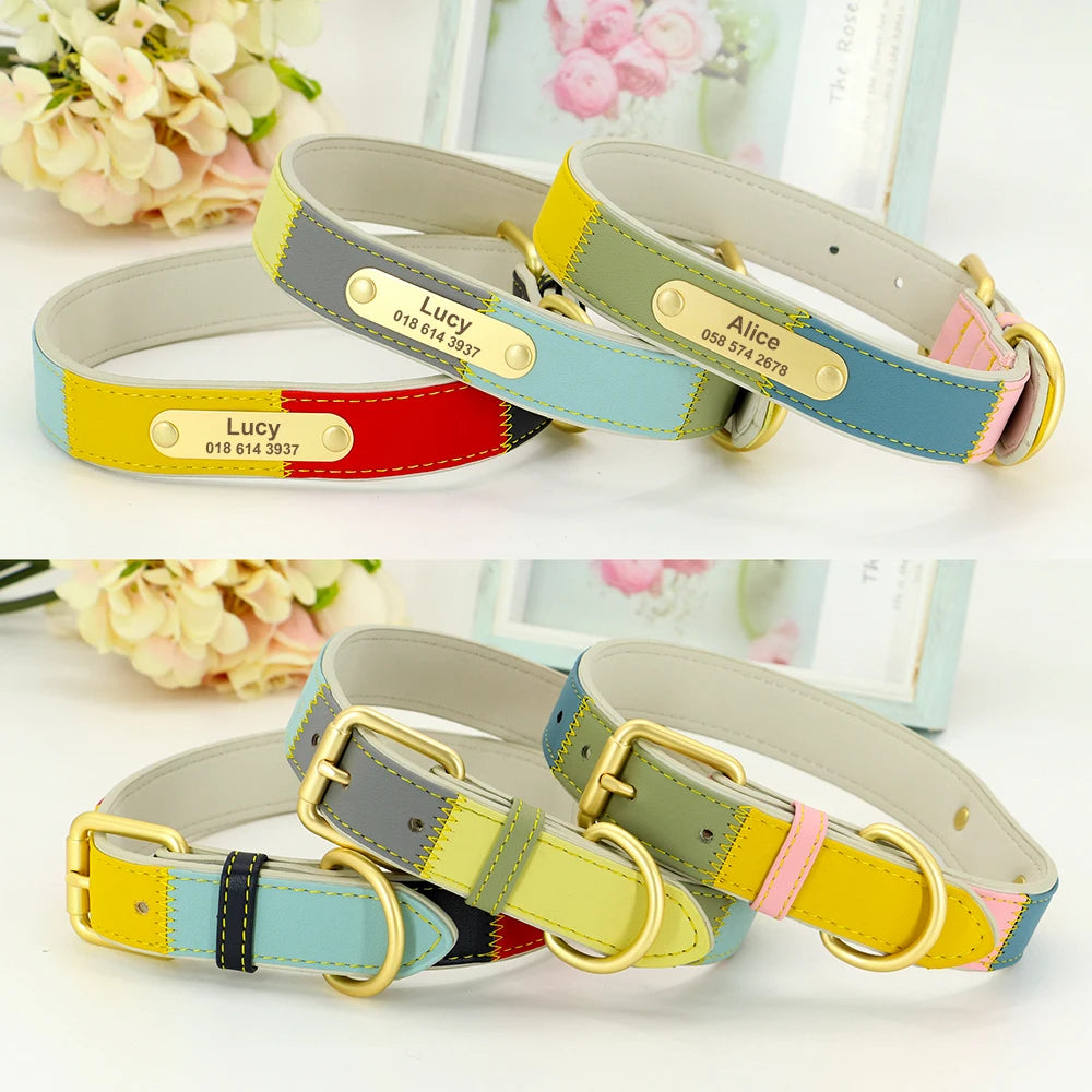 Hond Halsband Kleurrijk – Leren, Verstelbare en Gepersonaliseerde Hondenhalsband met Naam