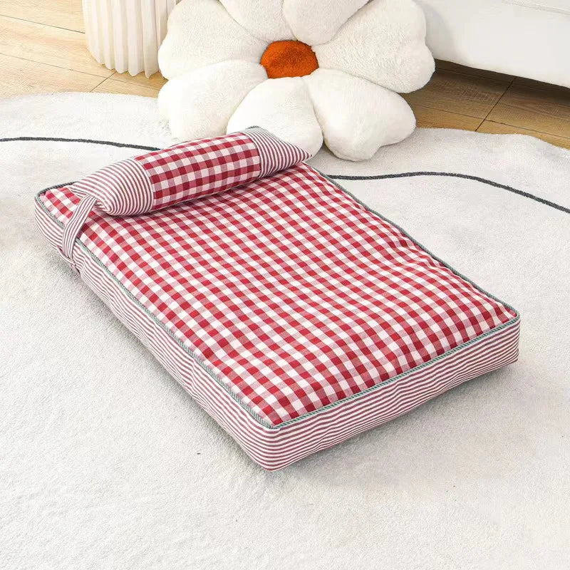 Met deze luxe hondenmat geef je je viervoeter een zachte en comfortabele rustplek. De ademende katoenen hoes zorgt dat je hond koel blijft, terwijl de hoge kussenrand extra steun biedt voor hoofd en nek. Dankzij de afneembare hoes blijft de mat altijd fris en schoon.