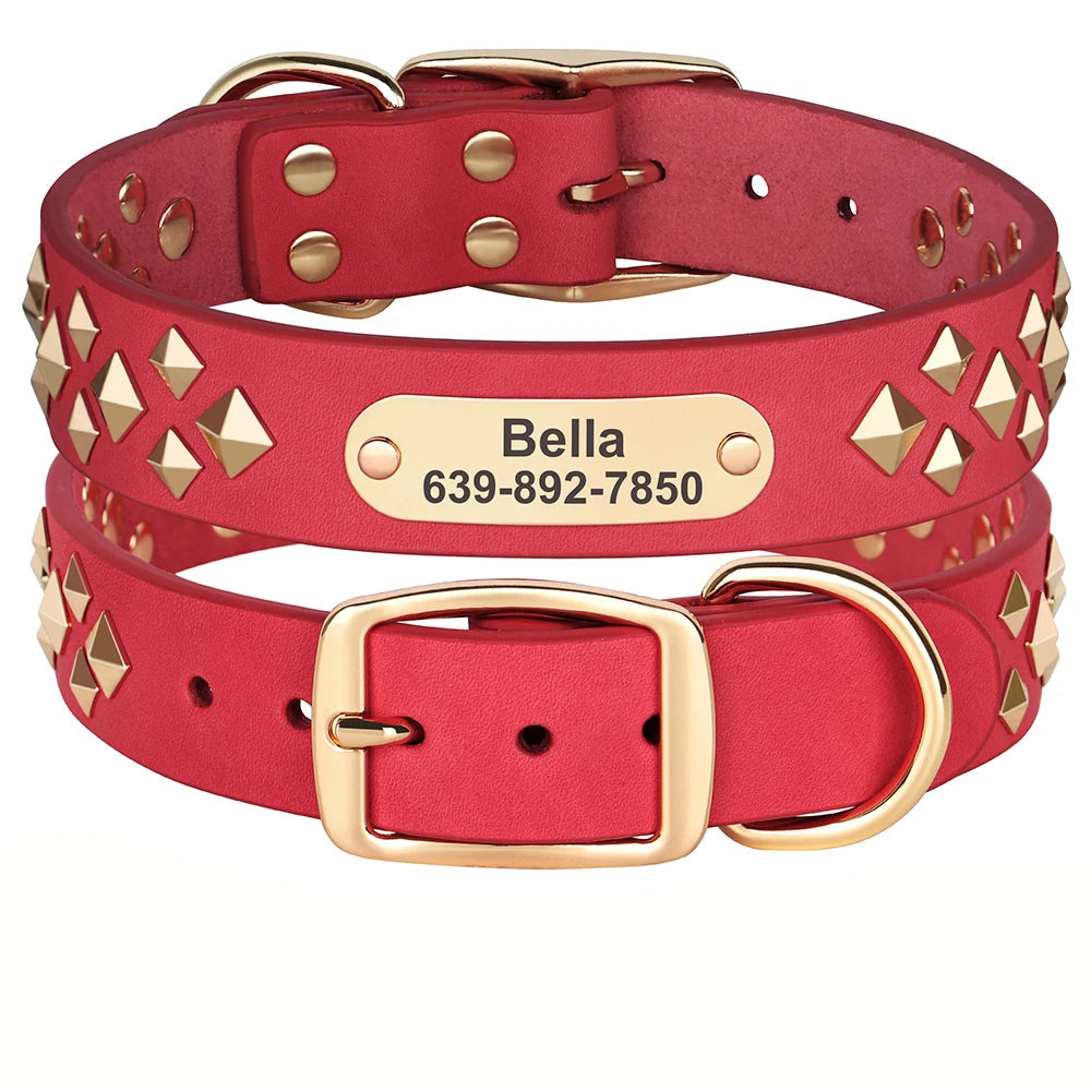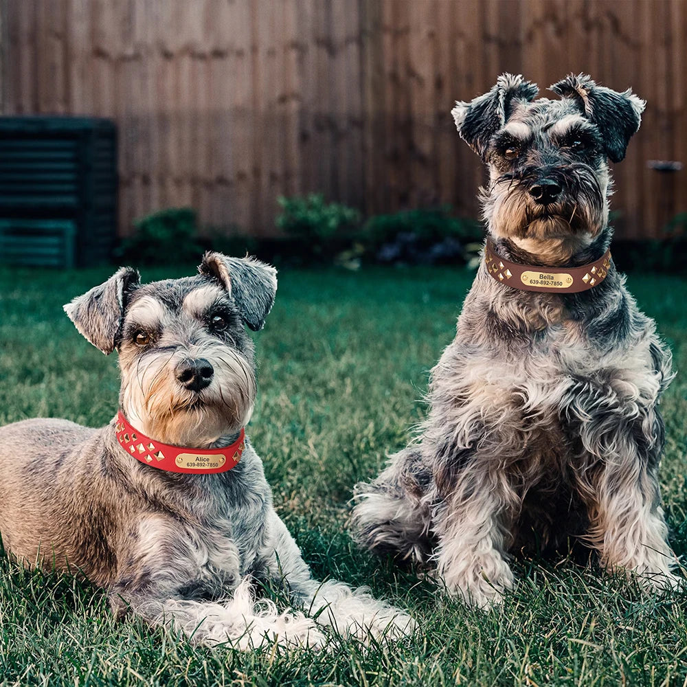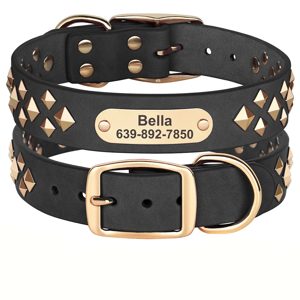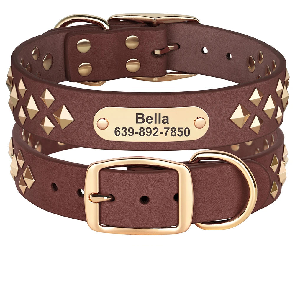 Geef je hond een stoere en stijlvolle uitstraling met deze luxe leren halsband. De naam en contactgegevens worden direct gegraveerd op het metalen plaatje, zodat jouw hond altijd herkenbaar is.