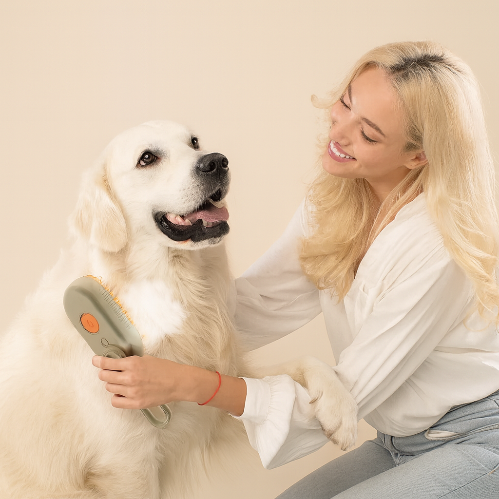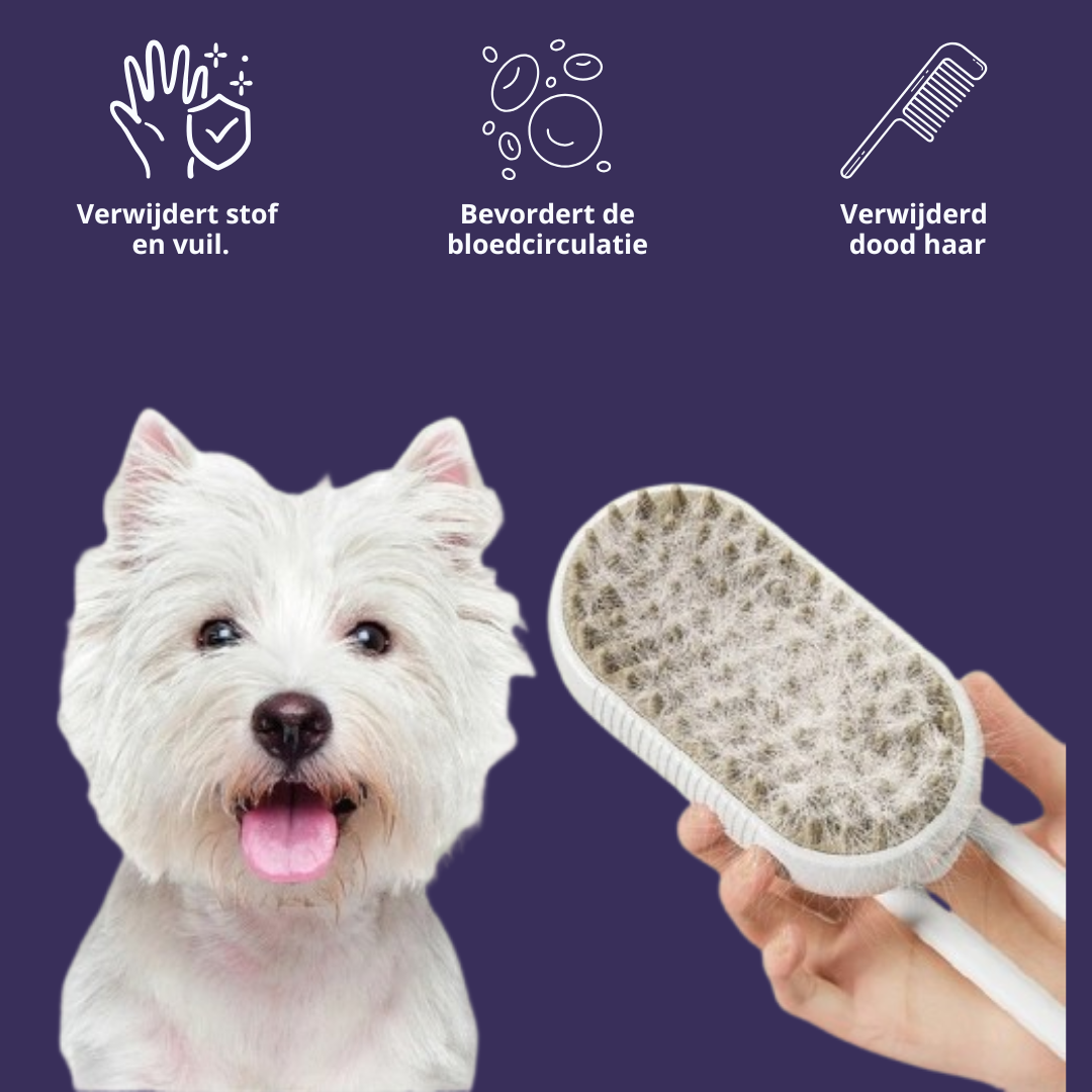 Geef je hond een luxe verzorgingsmoment met een stoomborstel die reinigt, verzorgt en hydrateert in één!