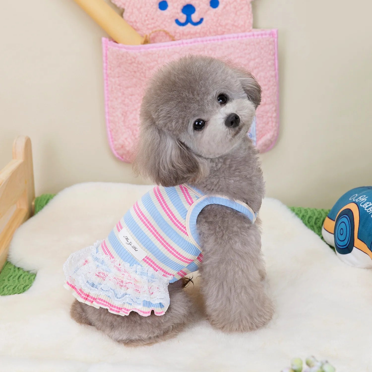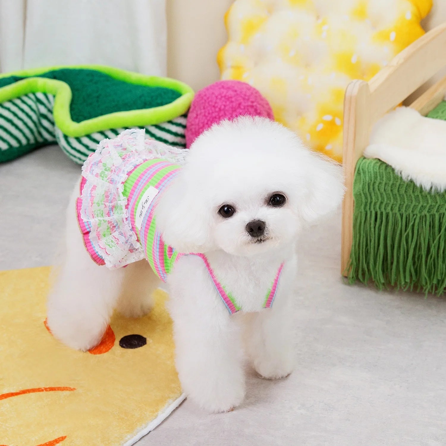 Geef je hond een stijlvolle en frisse look met deze vrolijke streepjes jurk.