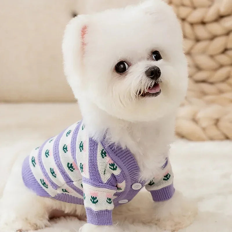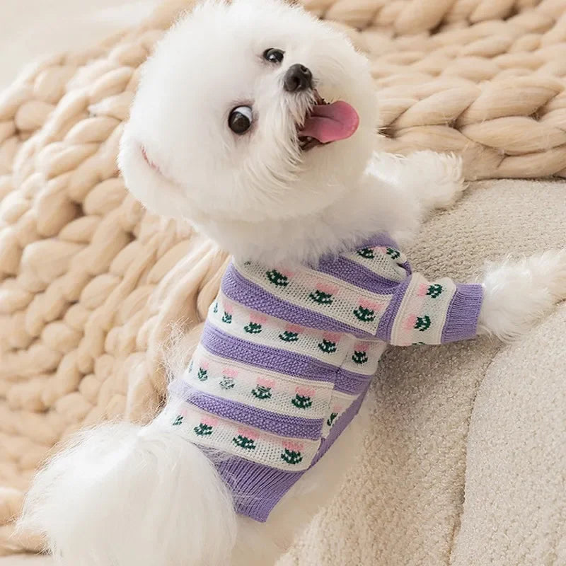 Voeg wat vrolijkheid toe aan de dag van je hond met de Trui met Tulpjes, een perfecte combinatie van stijl en comfort.
