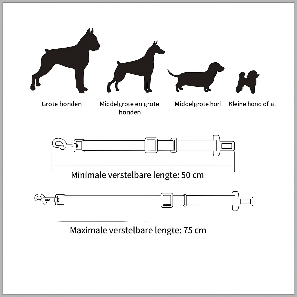 Zorg dat je hond veilig en comfortabel meereist met deze verstelbare autogordel. Geschikt voor honden van verschillende maten en eenvoudig te bevestigen aan de veiligheidsgordel van je auto.