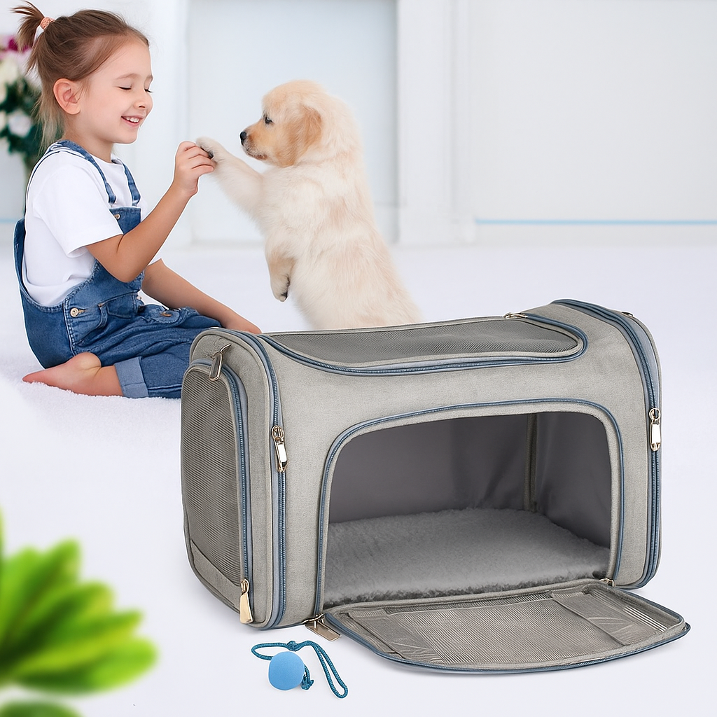 Neem je hond overal mee naartoe met deze veilige en comfortabele honden reistas, geschikt voor vliegtuigreizen. Ontworpen voor optimaal draagcomfort en veiligheid, zodat jij en je hond zorgeloos kunnen reizen.